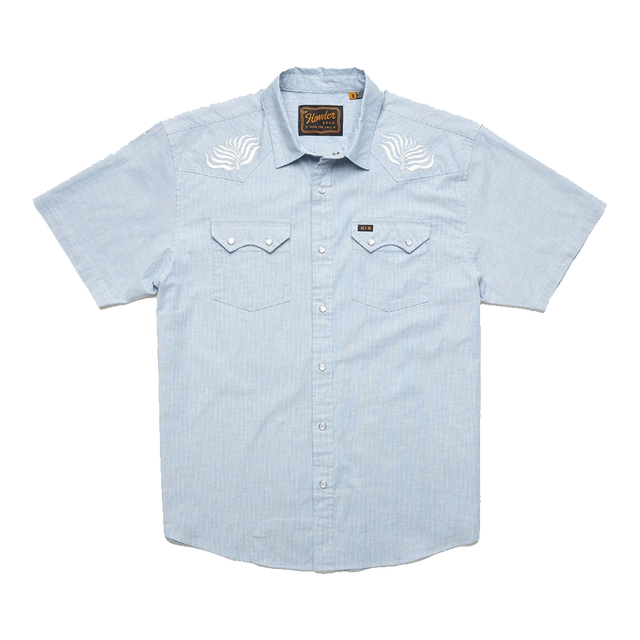The Howler Brothers Crosscut Deluxe Shortsleeve Seagrass Shirt, like its long sleeve brethren, features a unique motif embroidery from the Howler designing minds that you just won’t find anywhere else. We just sawed off the sleeves to help you cut through hot summer days with ease. A fan favorite for good reason.