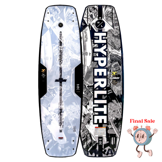Countless hours on the water have led Shaun and Nelson to create the 2025 Hyperlite Murray Pro Wakeboard and the feedback has been mind-blowing. The Murray Pro wakeboard begins with a Subtle 3-Stage Rocker, where there is no flat spot, the rocker simply increases under foot for a colossal boost off the wake. Carrying on from past shapes, Shaun kept the Variable Edge Design and Molded Landing Feature making the board enjoyable for all ability levels. The board’s edge is rounded between the inserts, sharpening under foot and then cupped at the tip and tail delivering solid edge hold when you want it and forgiveness when you need it. Hyperlite’s Biolite 3 Core and compression molded construction keep The Murray super light for easy spinning, flipping and full sends. When looking close at the 2025 Murray Pro Wakeboard graphic, you'll notice this graphic is comprised of 30 years worth of Murray's favorite wakeboard graphics from previous years and previous boards in to one board!