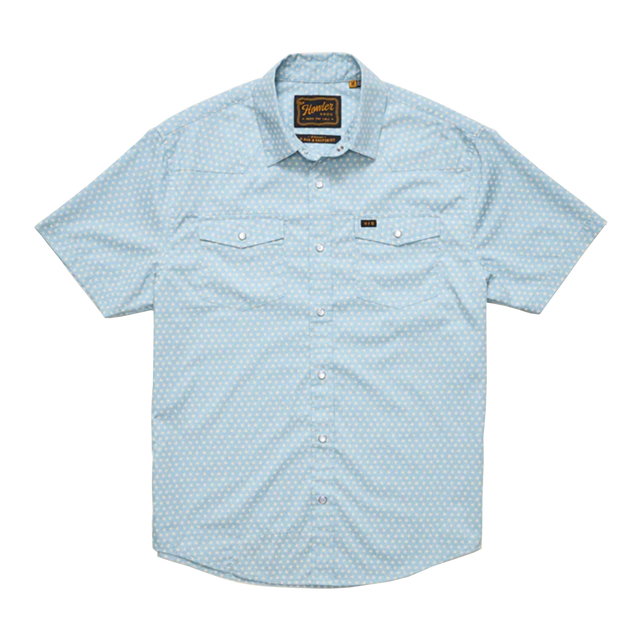 The Howler Brother H Bar B Snapshirt Lockhart Floral Blue is one of our most popular releases every season because of its glorious pearl snaps and timeless good looks. It is THE new classic pearl snap shortsleeve. We twist it up each season in our very own vintage inspired prints and plaids with our HB original sunglass cleaning microfiber at the hem. There’s a whole stampede of imitators out there trying to get in the pasture with their own version of this shirt. Choose your horse wisely and make sure it’s branded H Bar B.