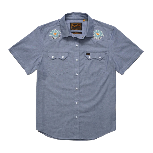 Like its long sleeve brethren, our pearl snappin’ Howler Brothers Crosscut Deluxe Snapshirt Fresh Blooms features badass and unique motif embroidery from the Howler designing minds that you just won’t find anywhere else. We just sawed off the sleeves to help you cut through hot summer days with ease. A fan favorite for good reason.
