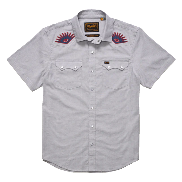 Like its long sleeve brethren, our pearl snappin’ Howler Brothers Crosscut Deluxe Snapshirt High Time Grey features badass and unique motif embroidery from the Howler designing minds that you just won’t find anywhere else. We just sawed off the sleeves to help you cut through hot summer days with ease. A fan favorite for good reason.