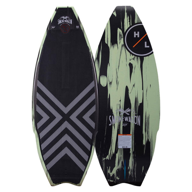 The 2023 Hyperlite Smokewagon Wakesurfer, Hyperlite’s new high end skim style surfer geared for larger surfers in the wakes of today. Sized at 56” & 58” the Smokewagon provides maximum volume and the wide shaped swallow tail design adds push to keep up with wakes of all sizes. This skimmer has great speed down the line thanks to the minimal rocker height and the lightweight Carbon Construction with Nova Core makes the Smokewagon super manoeuvrable. Machined EVA Traction maintains a tight grip for solid edge control. Outfitted with the Solo Skim Fin, riders can hold a fast line while engaged and break it free when it is time to spin and stick shuvits.
