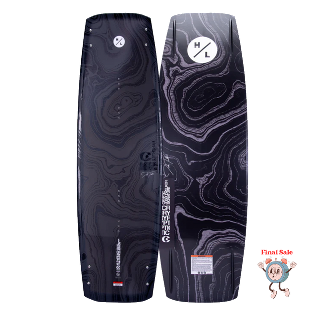 The 2024 Hyperlite Cryptic Wakeboard yields quick edge response and aggressive feel with massive pop off the wake as requested by Josh Twelker. Shaped by Greg Nelson, the Hyperlite Cryptic Wakeboard is a fast board incorporating a continuous rocker and slightly wider profile. The shape includes a subtle landing feature in the belly transitioning to dual concave tunnels exiting the tip & tail for an aggressive approach to the wake. The variable edge design is beveled between the stance platform for a forgiving feel sharpening at tip & tail for secure edging. Josh Twelker says the Cryptic is a free rider's delight with effortless carving and an explosive pop off the wake.