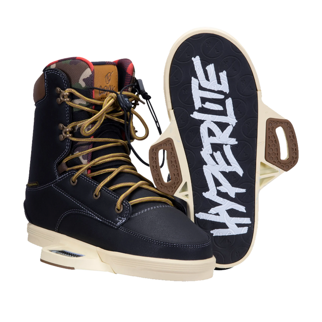 The 2022 Hyperlite Codyak Binding uses the fusion plate platform featuring our walkable pro liner. This wakeboard bindings is a great option for all cable athletes. Cody Hesse felt a boot with a more supportive walk liner and full lace up construction could make his signature binding stand apart from the rest. Modeled after boxing shoes, which Cody wears performing stunt work, they provide support, grip and protection delivering a precise connection to your board with enhanced movement. The Codyak liner incorporates a larger than normal lace zone for increased internal support. The shell of the Codyak features a single lace closure with upper cuff lace hooks for easy in and out. This new lacing configuration also allows a rider to customize the tension of the shell for more or less range of motion.