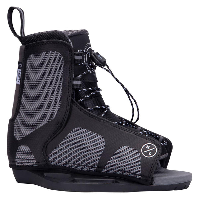 The 2026 Hyperlite Remix Boys Binding is a supportive but easy-to-get-into adjustable boot. It features dual lace zones like more expensive boots, plus the plushness you come to expect from an open-toe. The 3D molded tongue provides maximum comfort with no sacrificed board control. The Remix Kids is an excellent choice for beginner to intermediate riders looking for a comfortable, user-friendly option.