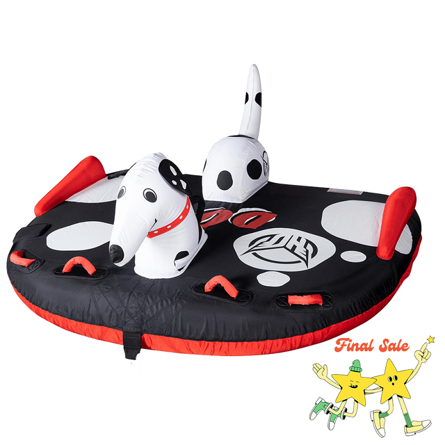 The HO Dog Towable Tube is a 3 rider towable tube built for fun days on the lake. The Dog can handle up to 3 riders but it can be ridden by 1, 2 or 3. The center rider sits on the deck of the tube while the outside riders lay in the prone position. Built with only the finest materials and guaranteed with our 1 year warranty, this tube will keep you where you want to be…on the water.