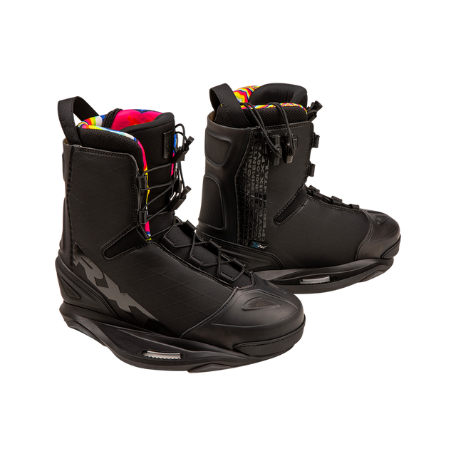 A brand-new, super clean RXT boot built with X-Pac sailcloth, giving the boot lightweight flexibility, without sacrificing durability. Highlighted by our proprietary Intuition+ heat moldable liner and enclosed around the heel and toe by FlexForm, this unique material compound creates ultimate flex, comfort, and longevity. Ronix Xperimental Technology has the perfect blend of a stealth midnight exterior and a vibrant kaleidoscope inside. Lightweight support for the rider that wants the most in side to side mobility without sacrificing heel hold down.