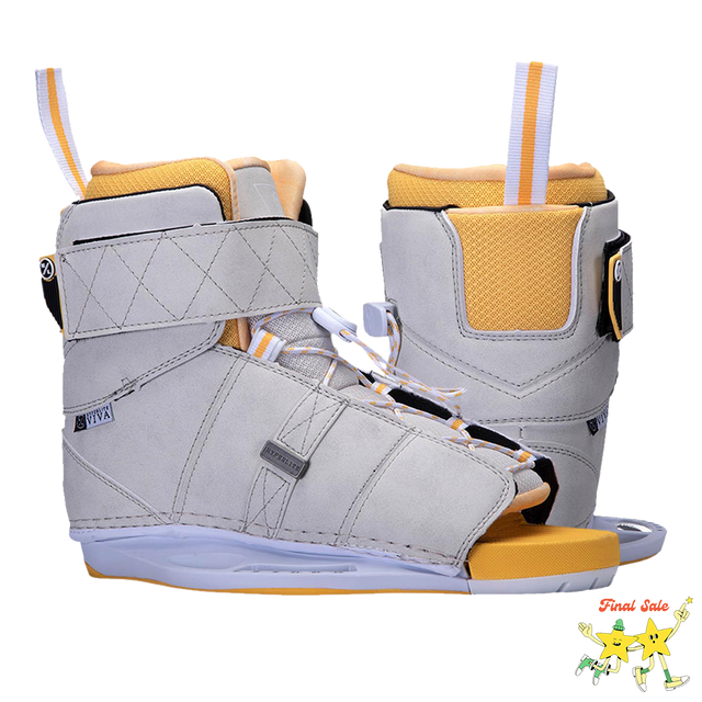 Ladies rejoice with the Hyperlite Viva Binding and the customizable feel and support it delivers. Thanks to the quick cinch lace zone and the upper ankle Velcro Closure, you can dial this binding in to meet your needs while shredding the wake. Affix the Viva on any wakeboard with our 6” Universal Mounting System and feel free to share the binding with your friends as the open toe design accommodates multiple size feet.