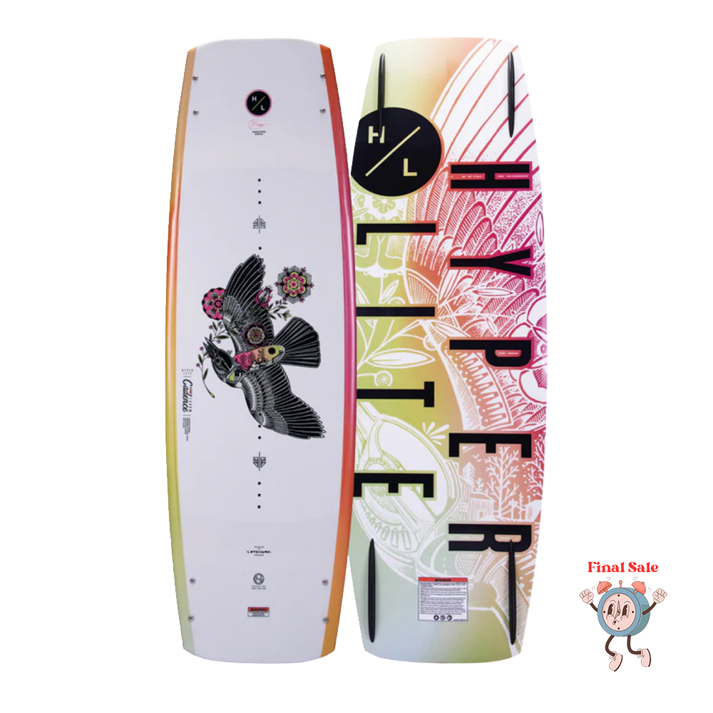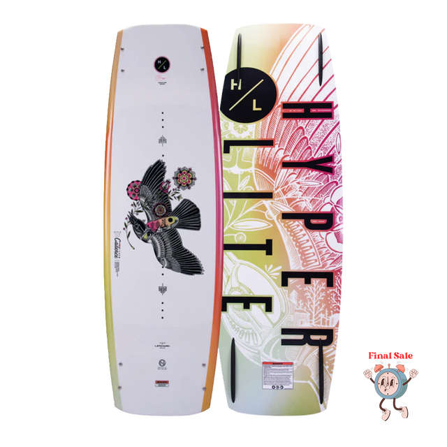 The 2024 Hyperlite Cadence Wakeboard yields quick edge response and aggressive feel with massive pop off the wake! This board was shaped by Greg Nelson in conjunction with Bec Gange. The Hyperlite Cadence is a fast board incorporating a continuous rocker and slightly wider profile utilizing Hyperlite's Satin Flex for female athletes. The shape includes a subtle landing feature in the belly transitioning to dual concave tunnels exiting the tip & tail for an aggressive approach to the wake. The variable edge design is beveled between the stance platform for a forgiving feel sharpening at tip & tail for secure edging. Bec enjoys the explosive pop off the wake and effortless carving making it easy to link tricks back to back.