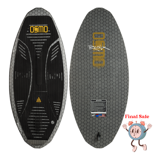 The 2025 Ronix H.O.M.E. Carbon Osmo Wakesurf Skimmer is a new skimmer that is fast in either direction and carries more speed for technical skim style tricks. With input from rider Dylan Matthews we began shaping performance driven skimmers with a true twin-tip design. The result was a board that is fast but stable, and reactive but composed. Spin easier, air-out smoother, and land shuvs with more speed. For the rider wanting a board that complements their meticulous inputs and weight transfers when riding. The twin-tip inspired shape features a wider profile than a typical competition-style skimmer. This increases rotation speed and allows for shorter board sizes. The added width also increases pocket speed making the experience of building speed from the back of the wave easier. Minimal rocker in the tip and tail and a domed deck complement the board’s connective feel. Short for Osmosis, meaning the transfer from a more concentrated liquid to less, the nature of transferring energy into the OSMO is unique. It accommodates the revolving door of micro-adjustments for a closer connection between the rider, board and wave. Land 720 shuvs or dial in your 360. Made in the Good ol’ U.S. of A. We are already coming up to 20 years of Ronix, and to commemorate we are limiting our H.O.M.E. boards to 812(the time Ronix was founded) surfers. We are limiting production to 450 Osmo boards.