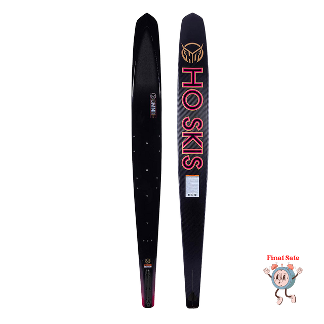 The 2024 HO Womens Carbon Omni Water Ski is optimized for the skier who needs one ski to do everything. Developed for high versatility with added responsiveness, the Carbon OMNI marries high performance aggressive skiing with the efficiency essential for open water skiing. Shape: The Omni was designed with a Hybrid Waist Width, halfway between those typically found in traditional skis and those in wideride skis. This provides for smooth instinctive turns at a wide range of speeds. The Omni’s Continuous Rockerline executes intuitive turns with no paralleling while the Clean Edge Technology tail reduces drag 50% by allowing water to release cleanly off the bottom of the ski. This differs from conventional edges where water wraps around the bevel, up the sidewall and releases off the upper edge creating suction. The Clean Edge bevel-less tail offered in the Omni designs, Clean Edge 3.0, produces more acceleration with less skier input. In addition, we’ve enhanced stability by maintaining more bevel between the rear foot and fin. The result is a fast moving highly efficient ski with the handling required for tight line turns. Construction: The Carbon Omni is built utilizing Carbon Laminates, for increased stiffness delivering maximum acceleration. A traditional Polyurethane core creates a stable and damp feel, optimized to perform in variable water chop. It’s also longitudinally stiffer for the more aggressive skier who demands more horsepower and increased response in pursuit of throwing the biggest water walls.