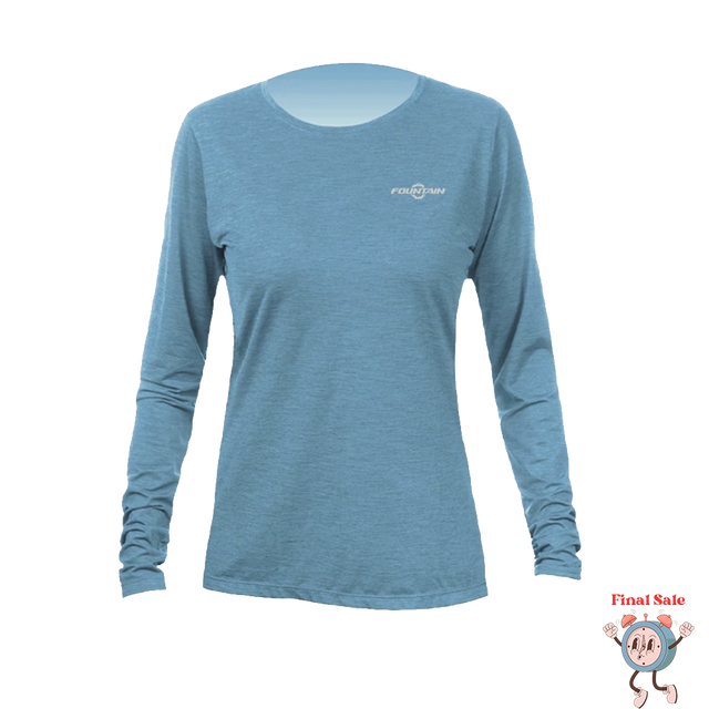 Fountain Powerboats Womens Blue Seas UPF Dri Fit Long Sleeve Tees are designed to ensure a superior combination of breathability, performance and protection that thrive in extreme hot climates.