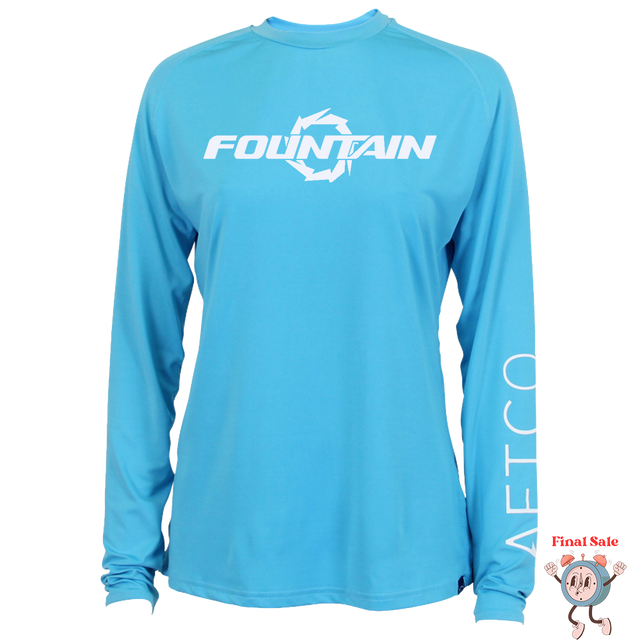 The Fountain Womens Sandbar UPF Shirt was created with 92% polyester, 8% elastane. Great to wear on the water in a sunny area as these women's UV shirts are made with UPF 50 sun protection and quick dry moisture wicking material.