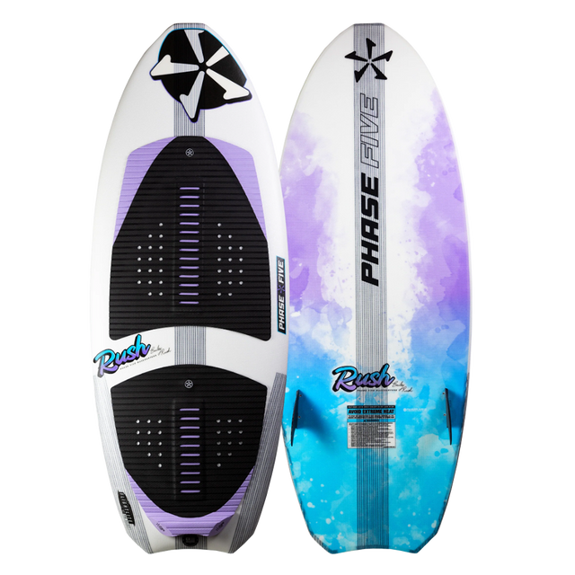 The 2025 Phase 5 Rush Wakesurf Board designed by Bailey Rush delivers optimal responsiveness, pop and flow. The refined nose and distinctive tail allow for huge airs and unmatched speed through the water. Carving, revert and 360’s have never been smoother and it’s built to progress with you to any level. From beginner to pro, this board will elevate your riding. The 2025 Phase 5 Rush Wakesurf Board is glassed with our Flightlite V2™ Pro Select layup for ultimate lightweight performance and is equipped with a twin FCS Fusion fin setup. This board isn’t just fast, it’s a Rush!
