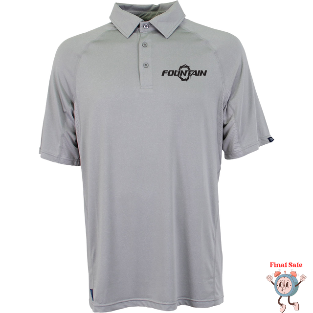 Fountain Boats Geo Cool Polo Grey Performance Polo has your back. This polo features the Geo Cool™ fabric that uses mineral infused cooling technology to absorb heat and keep you cool. It has AFBLOCK, AFCOOL, and AFGUARD in one package, it makes sure you have the most high tech polo on and off the water. And when you get back to the dock, mesh panels and antimicrobial treatment to the shirt helps eliminate odor and keeps you smelling fresh even after sweating.