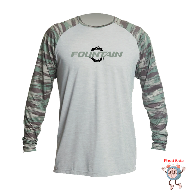 Fountain Camo UPF Dri Fit Long Sleeve Raglan - Small is backordered and will ship as soon as it is back in stock.