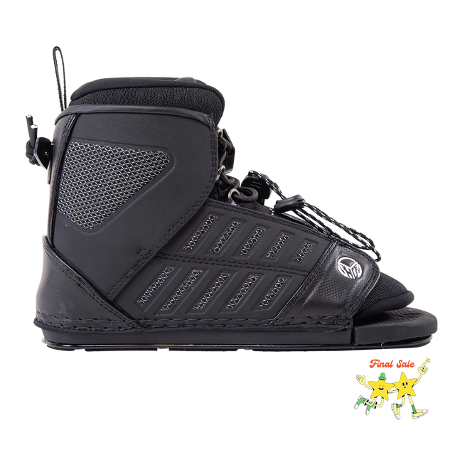 This boot can be converted to a traditional front or rear mounted plate with the HO Ski Boot Adapter Plate.