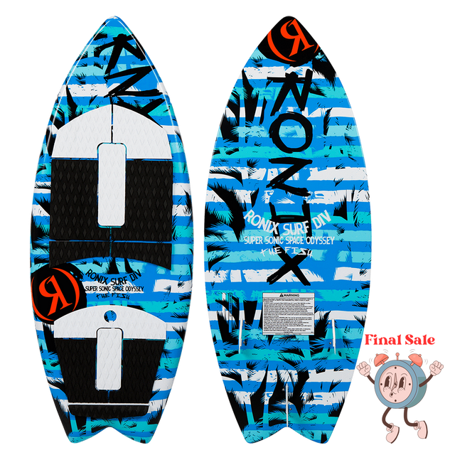 The 2024 Ronix Kids Super Sonic Space Odyssey Fish Wakesurfer is an all-around kid’s surfer. A Fish profiled “fun” board with a deep swallow tail that can easily break free on the top of the lip yet has the bottom turn drive to get you there quickly. Based off our best selling and longest running adult Fish shape. Made from a construction like our bestselling wakeboards, this board is stronger than most kid’s surfers and is also easier to submerge for deep water starts. Comes with a performance award sticker pack with the various tricks that should be on any grom’s to do list.